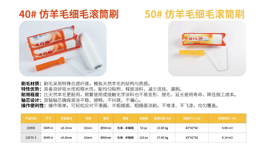 根据不同的涂料和用途进行分类,便于选择。每一个产品,都是采用精心挑选的原材料,在严格的质量管理下制造而成,具有良好的涂料吸收率和排出率,可提高工作效率,保证了涂装均匀美观。