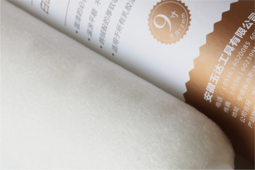 白鸽绒由Dralon®(德拉龙)和尼龙材料高密度编织而成,如鸽绒般的纤维丝吸附了大量细密的油漆珠,几乎完美的完成了光滑涂面的工作。油漆可以在绒线里自由流动,湿漆后瞬间高吸附,挂漆饱满,吐漆分布完全均匀,释漆流畅,极大的提高了滚涂效率,节约了工人时间并保证效果完美。