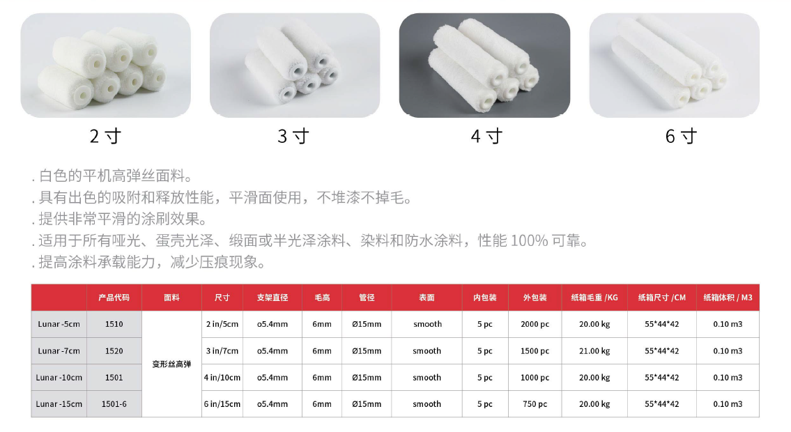 具有出色的吸附和释放性能,平滑面使用,不堆漆不掉毛。