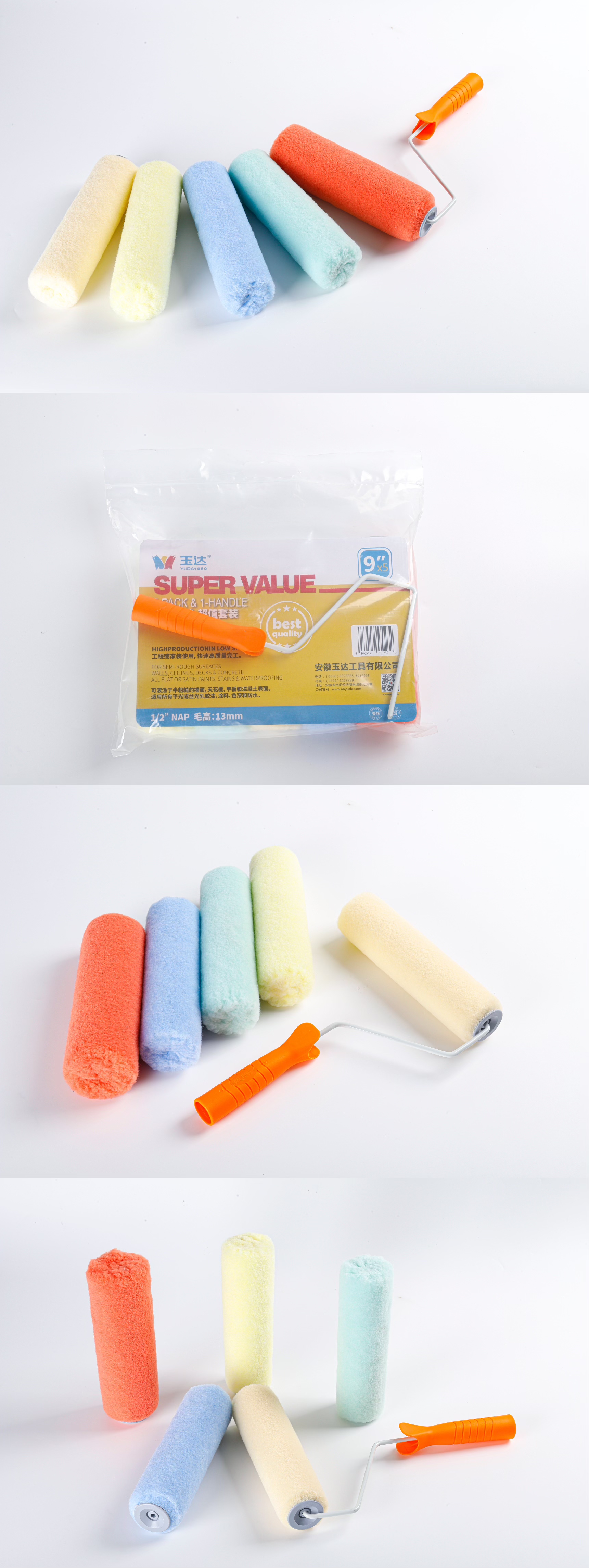 各类型滚筒刷满足不同涂刷要求,短毛用于大面积平滑涂刷,长毛用于