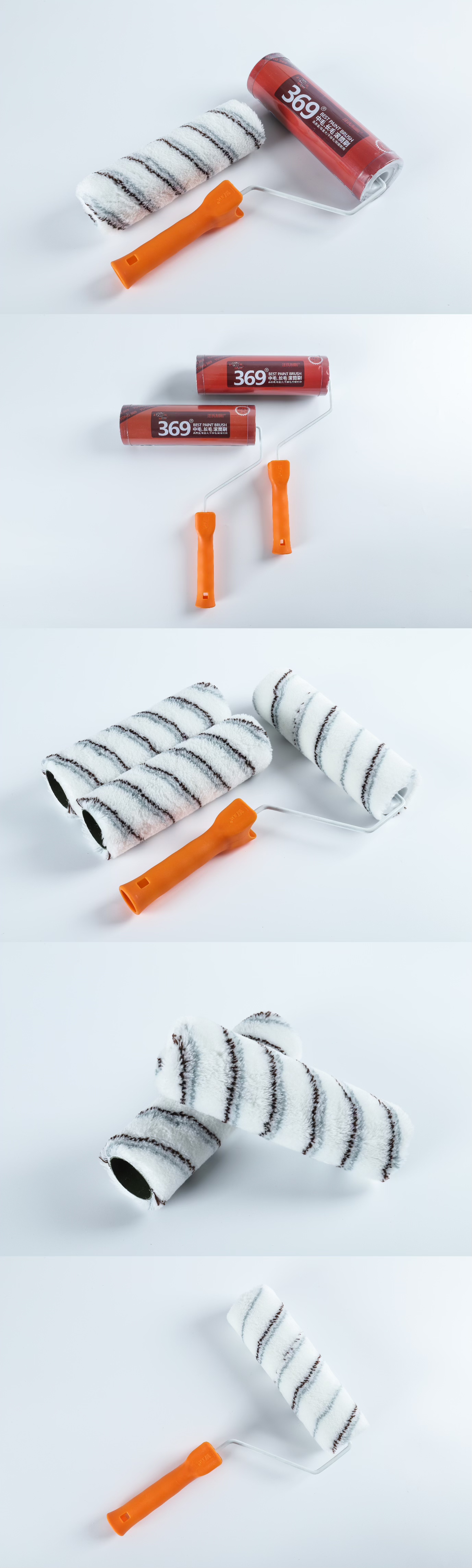 玉达369#棕灰条中毛滚筒刷乳胶漆刷细短毛滚筒刷油漆涂料刷子