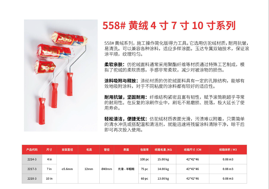 易清洗。可以兼容各种涂料,适应多样涂面。玉达专属双轴技术,保证滚