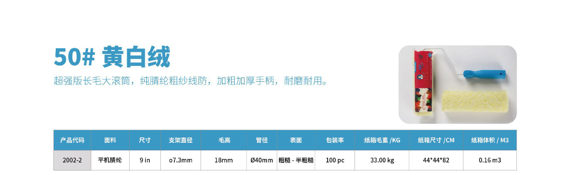 超强版长毛大滚筒,纯腈纶粗纱线防,加粗加厚手柄,耐磨耐用。