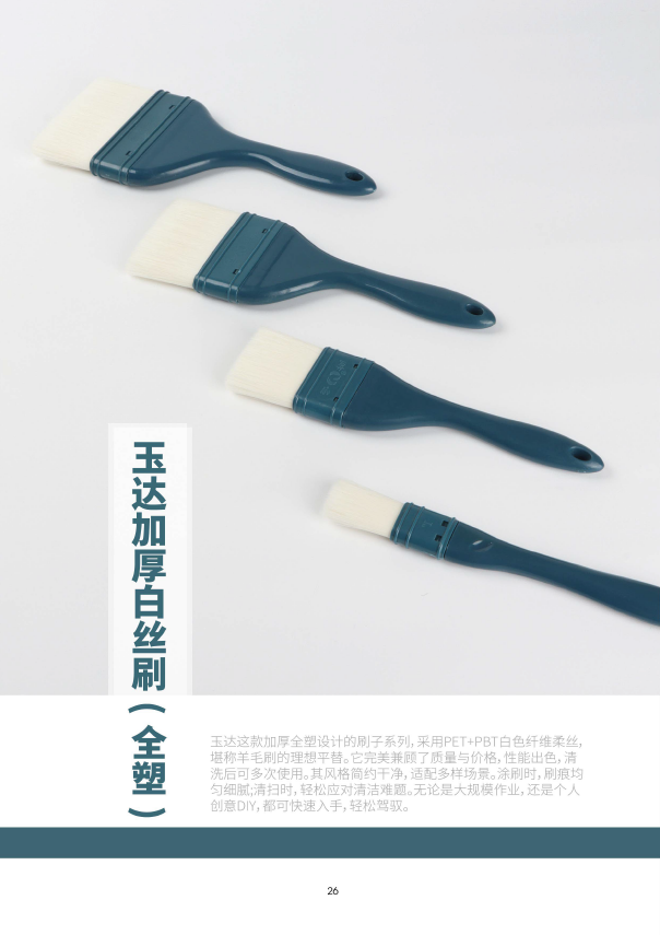 玉达这款加厚全塑设计的刷子系列,采用PET+PBT白色纤维柔丝堪称羊毛刷的理想平替。