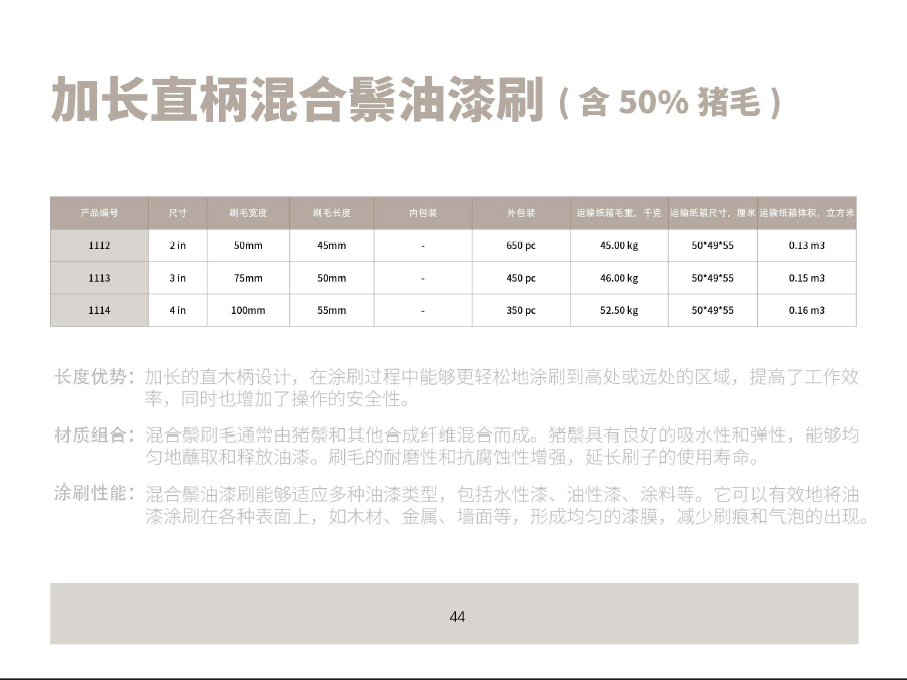 涂刷性能: 混合鬃油漆刷能够适应多种油漆类型,包括水性漆、油性漆、涂料等。